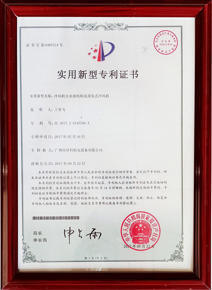 星科實業-冷風機出風口結構及蒸發式冷風機專利